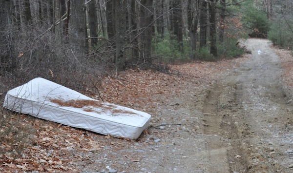 We …and the forest too …are thankful for this start at taking back the forest from the off road vehicle knuckle draggers, dolts and forest despoilers. We are also pleased that DCR has supplied additional staffing at the forest for this summer. They are already doing a great job and here are a few photos, below, of what they’ve been cleaning up. The next step should be to catch a few of the dumpers in the act, tow their vehicle and see them in court. A few examples made will go a long way toward bringing this nasty problem under control.