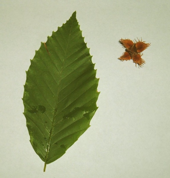 By fall those female flowers that were fertilized develop into brown, triangular, spiny burrs each containing two nuts about a half inch long. The nuts are oily and edible. In France and other European countries beech nuts are gathered and milled for flour and pressed for oil. Beech nut oil is used in salads and in cooking.