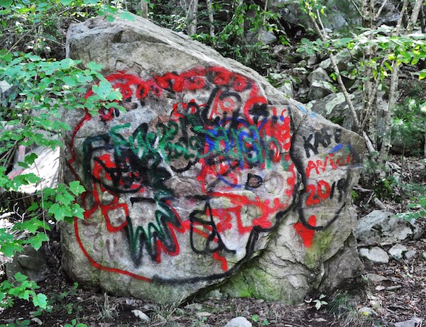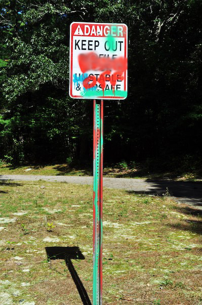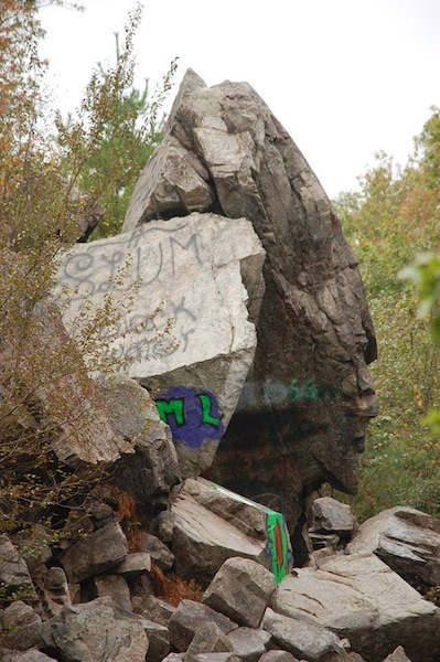DCR ignoring that part of the SMB has allowed vandals to spray paint everything in sight including the asphalt road leading into Joshua's Mountain. Even without Profile Rock, Joshua's Mountain is geologically interesting rising above the coastal plain. Born from the granite batholith that runs from Freetown all the way south to Little Compton, Rhode Island. DCR has the area posted because of "loose rocks." Come on! DCR has many state forests and parks, especially west of Worcester out to the Berkshires loaded with loose rocks and also ledges, glacial debris piles and actual mountains. Once again DCR is unconcerned. They don't want to deal with it so they deprive area residents and visitors of local geological history. Come on Freetown, make DCR clean up this toxic mess in your otherwise beautiful community. It is right next to your wonderful historical society. Joshua's Mountain is part of your natural heritage. DCR should be ashamed of itself.