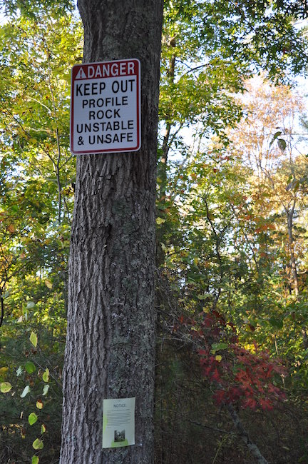 Profile Rock was a natural granite formation on the northeast side of Joshua's Mountain in the Southeastern Massachusetts Bioreserve. It was in a beautiful area of New England hardwood forest, especially attractive on sunny autumn days when the leaves were changing color and dropping. DCR negligence in managing, maintaining and enforcing the law in that area of the SMB possibly caused the protruding granite profile to fall from the mountain. That occurred on June 19, 2019. And, four years later, the condition of the forest and landscape there is a sin and a shame!