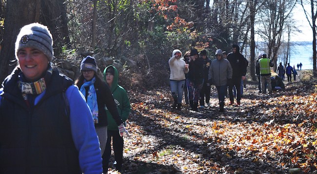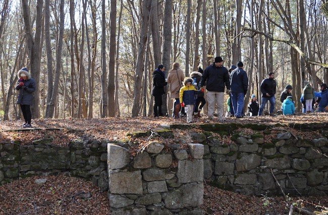 This past Saturday Watuppa watershed forester Mike Labossiere and local historian Bill Goncalo conducted probably the largest tour ever of Interlachen, the former estate and farm of Colonel Spencer Borden. Hundreds of individuals and entire families were in attendance. The size of the multitude that descended on Interlachen was especially remarkable because the temperature was only 31 degrees at the 10 a.m. starting time and a gusty north wind was sweeping across the Watuppa directly onto the Interlachen peninsula that juts out into the pond. Imagine how many more might have attended if free hot coffee and donuts had been available?