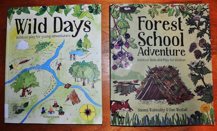 Two of the many books available on outdoor nature play for children. Available from Amazon, other book sellers. They may be available for borrowing from your local library. Check 'em out.