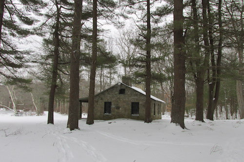One of the popular loops in the park is around the largest pond, Leach Pond, which is just below the visitors’ center. Just as you reach the pond’s edge, there is a rustic stone hut, which boasts a fireplace and plenty of firewood. The ranger told me that anyone can go in and kindle a fire to warm up. It seems like an especially wonderful thing to do if you bring along kids and the makings for s’mores!