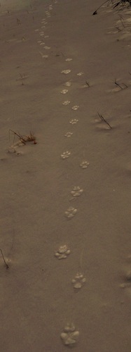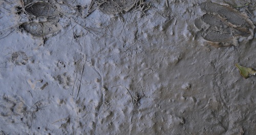 CLUE: Three local mammals left their tracks in the mud while using the wildlife tunnel under Route 24.