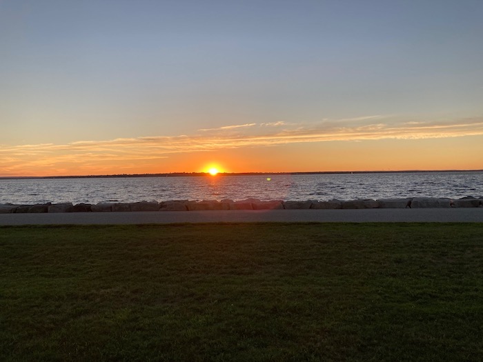 Three riders attended the sunset ride on the Friday evening of Labor Day weekend. It was a perfect evening for a ride! When we reached Colt State Park we found a long line of cars entering to view the sunset. The weather was excellent: mild temperatures and a cloudless sky. After the sunset, we headed towards Providence. The evening air was cooler and made for a very comfortable ride.