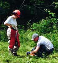 The Conservation Interns arrived at the Fall River/Freetown State Forest at the beginning of the last week of June to begin work. Steve Bates, Director of the State Forest, made them welcome and helped them set up a campsite near forest headquarters. Green Futures members Everett Castro, writer of the grant, Tim Bennett, President of Green Futures and Sue Shea, overseer of the week's assignments, met them and together the work was planned out.