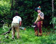 Our 6 Interns were a section of a group of 20 young people from all across the country who worked their way through an application process to be chosen to participate in this program. According to the AmeriCorps Handbook, their committment is not only to the service they will be performing, but also to each other and the ideals that have brought them together. Fairly unique among AmeriCorps programs, this program is residential. The members and the staff all live together in facilities at Dubuque State Forest in Hawley, MA. The members sleep in a large open bunkhouse, share meals in a dining hall, hike up a hill to the bathhouse, and share in the duties to make it all comfortable. Living as a community for 10 months plays a large role in how things are done within the program and greatly impacts the experience of the members. These are people who know each other well, who are experienced with working through growth and conflict, and who developed a natural cooperation with each other for resources and support. They are a team in the strongest sense of the word: a group of individuals, each with their own skills and experience, who, by coming together, make the whole stronger than the sum of the parts.