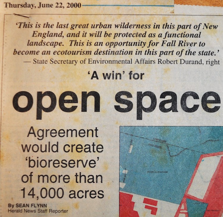 Twenty years ago we were there to help create the Southeastern Massachusetts Bioreserve. Unfortunately, It appears we will also be there to witness its demise. As the last, large, unfragmented forest in Bristol County, made up of both public and private conservation land, its main purpose was to protect water supplies and restore and preserve native biodiversity.