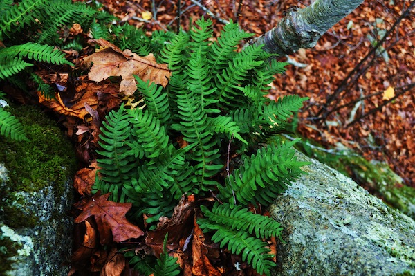 Looking down at Polypody fern.