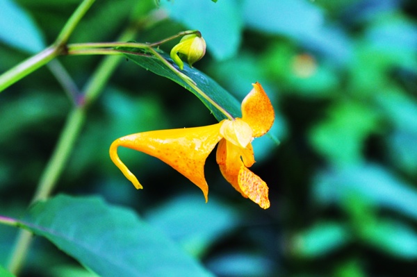 Our wild Impatiens, touch-me-not or orange jewelweed, is a common annual wildflower ranging across most of temperate Canada and much of the United States, except for the arid southwest.