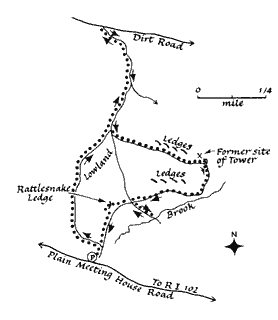 This map and more information can be found in Ken Weber's book "Walks & Rambles in Rhode Island - A Guide to the Natural & Historic Wonders of the Ocean State", published by Backcountry Publications, Woodstock, Vermont.