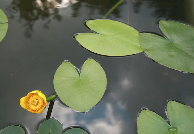 Yellow pond lily can be found in shallow ponds and lake coves, slow moving rivers and quiet meadow brooks with sun above and mud below. They grow best in water less than six feet deep and are native to all of North America, Europe and parts of Asia and Africa.