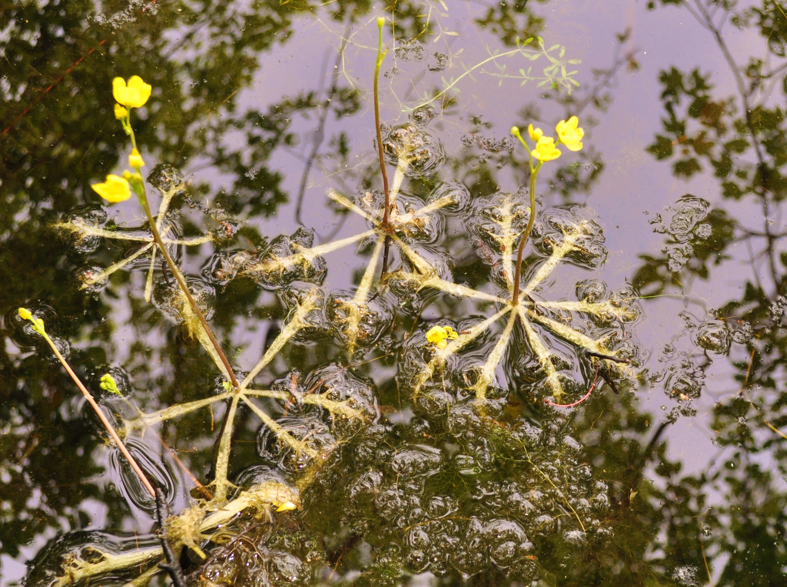 When the inflated bladderwort is ready to flower, a stem grows above the surface of the water bearing five to fifteen yellow flowers.