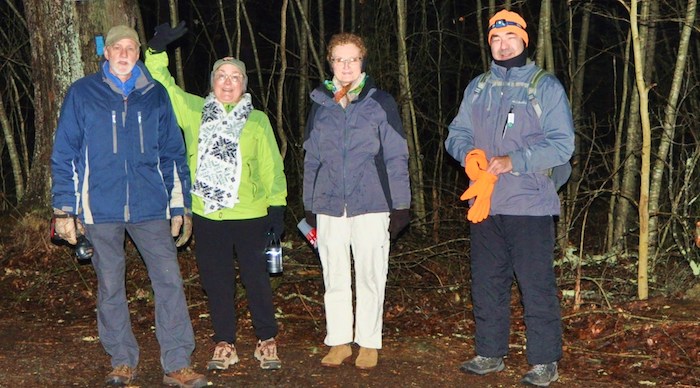 ACTIVITY ALERT - Difficult weather, rain, flurries, cold and windy this past Saturday, but by the 8 p.m. meeting time the foul weather abated and the waxing Worm Moon decided to shyly peek out through the fleeing gray clouds as a few hardy hikers started out to see if anything was hooting and howling in the forest.