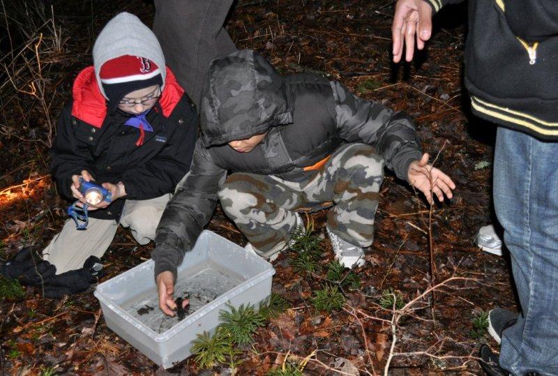 Spotted salamanders are most often encountered during mass migrations on rainy nights in March and April when heading to vernal pools where they will mate and lay their eggs. Like salmon, spotted salamanders return to the exact pool where they were born and lived as tadpoles before undergoing metamorphosis.