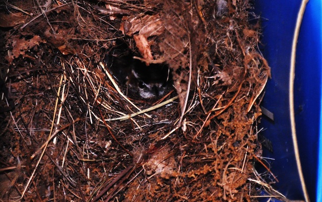 Their dome-shaped nests, complete with a side entrance, are rather large, messy affairs. Nests are usually close to the ground and composed of dried leaves, strips of bark, scavenged fur/hair, dried grass and other plant materials. Females pick the nest location which is often in tree hollows, stumps, abandoned cabins/buildings, in cavities under bridges.
