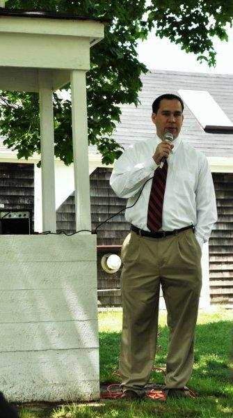 Fall River Mayor Will Flanagan welcomes folks to the Sherman land dedication ceremony.