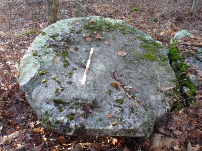 We recently received an email from an individual announcing he’s discovered a new “mystery stone” close to the boundary line between the Freetown State Forest section of the Southeastern Massachusetts Bioreserve and the city of Fall River’s industrial development land.