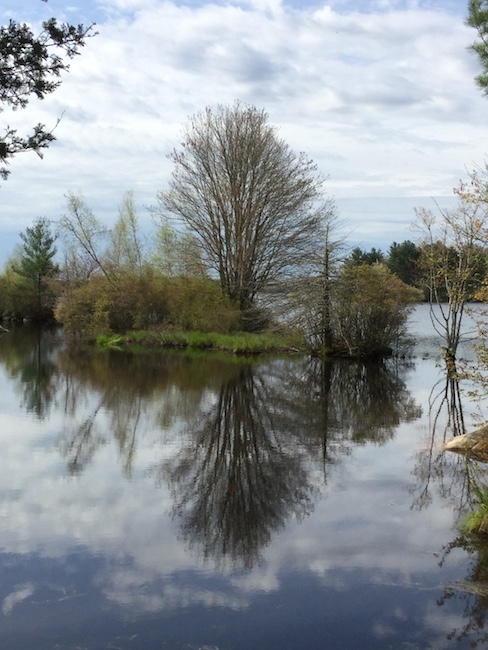 Most of this spring, so far, has been cool and rainy ...except for this past Saturday. Saturday was sunny and the sky was blue with a few white fluffy clouds so we hiked 5 1/2 miles from the Copicut River at Quanapoag Road northeast to view the Boiling Spring and then we followed Edmund House Road to Flag Swamp Road and then south and west over Quanapoag Hill and back to the trailhead we had started from