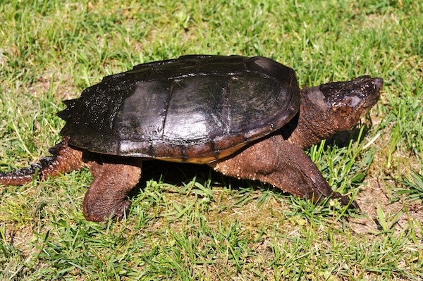 A turtle out for a walk.
