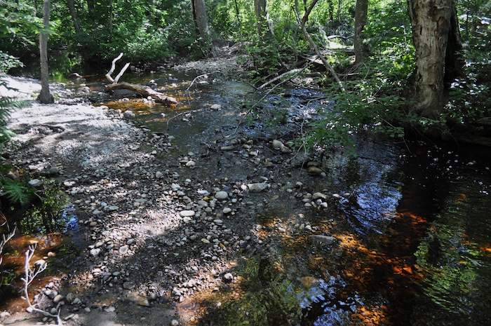 Egregious erosion and narrowed shallow brook.