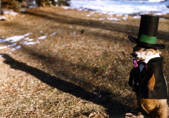 We saw this character standing by the side of the highway on February 2, last year. We hastily took a photo. What do you think he was doing?
