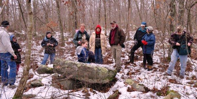 Thanks to rock hunter Larry for notifying us of his discovery; thanks to the navigational skills of Jeff; thanks to the keen eyes of Phil; …and thanks to the twenty-seven hardy explorers who took part in the search to find, photograph, measure, compare, and closely examine Mystery Stone IV.
