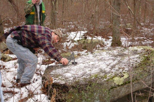 Larry Harrop, the discoverer of Mystery Stone IV, is a lithic enthusiast who scours Rhode Island and adjacent areas looking for and photographing mysterious stone structures and possible ceremonial stone objects from the land’s aboriginal past.