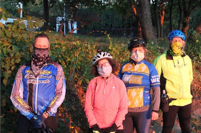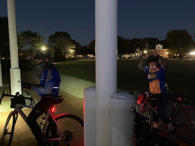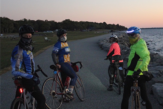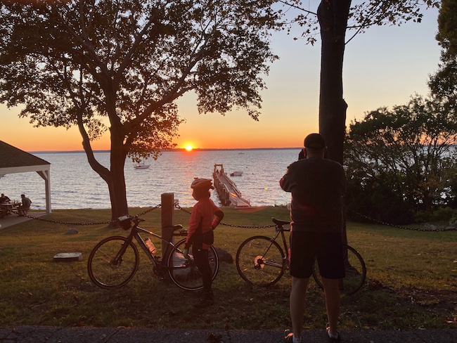 A small group of cyclists braved the chilly weather to ride the East Bay Bike Path Friday night October 2. In reality, as soon as we started to ride it turned out to be very comfortable. The sunset was beautiful!!