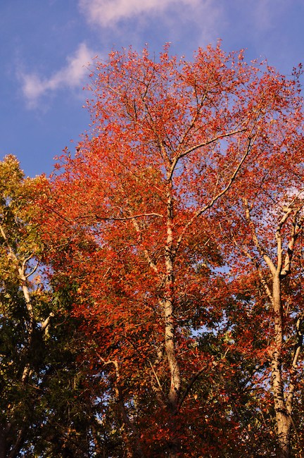The tupelo tree, Nyssa sylvatica, vies with the red maple, Acer rubrum, for the title of most intensely colored October tree. Are you as sweet as tupelo honey? We hope so. Most people only know this tree from the Van Morrison song, https://www.youtube.com/watch?v=Eq3YLhtuzTQ