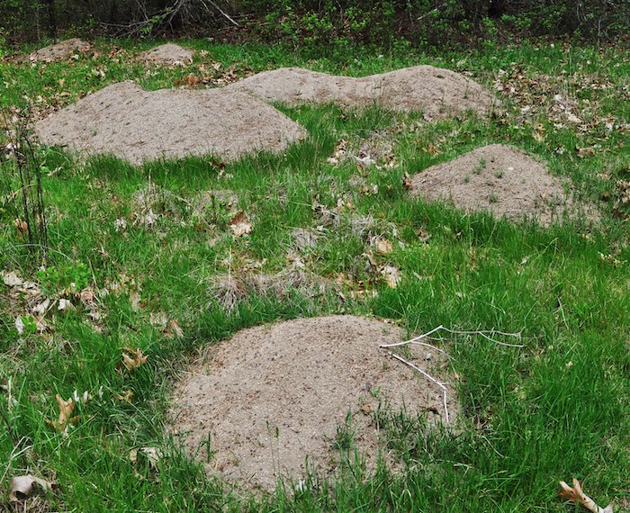 Mounds are usually located in areas of dry, sandy, nutrient poor soil. As the ants construct their tunnels and chambers they bring up particles of sand and gravel piling them up higher and higher. A thriving Allegheny mound ant colony may have a mound four feet high and four feet underground.