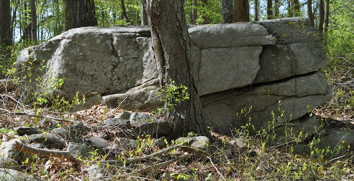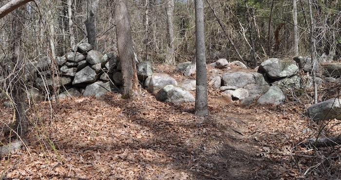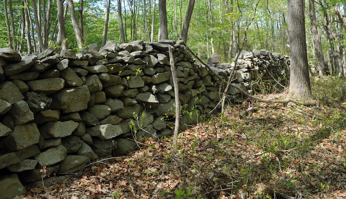 Motorized vandals from an existing illegal trail decided to make their own new illegal trail by removing a section of historic old stonewall to continue their illegal trail on the other side.