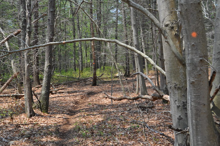 Another illegal trail in the Southeastern Massachusetts Bioreserve. Not all, but too many individuals decide to cut their own trails and DCR does little to stop it.