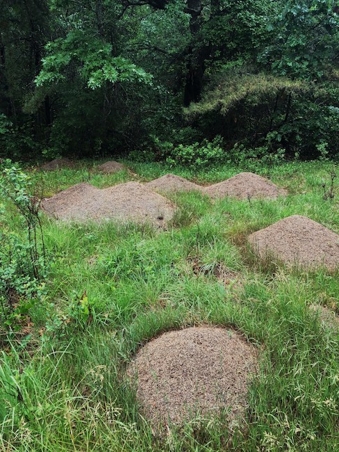These ants build large mounds in which to live and raise their young. These mounds serve as solar collectors providing warmth necessary for egg incubation. Worker ants kill nearby trees and shrubs with injections of formic acid to prevent any shading of their mound.