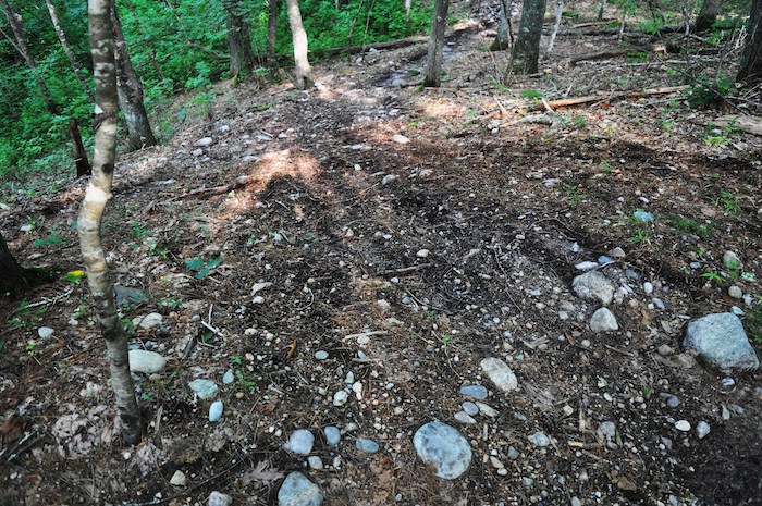 Once the topsoil is lost to erosion the motorized users are riding on Mother Nature's bones. The eroded material soon damages lower wetlands, vernal pools and water courses. Freetown Con Com should be outraged. On the Southeastern Massachusetts Bioreserve Trail Map and Guide park next to the gate, not in front of it, at the intersection of Bell Rock Road and Ledge Road. Follow the purple legal dirt bike trail and illegal trails in that area between Bell Rock Road, Copicut Road, Route 24 and to the south the Freetown/Fall River boundary line.