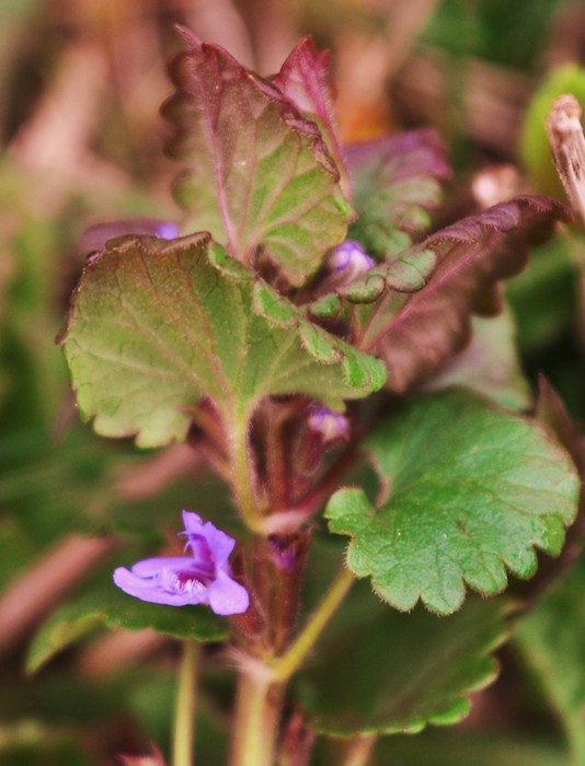 Gill-over-the-ground (Glechoma hederacea) arrived in North America with the first Europeans that brought it along with their cattle and their fodder. This alien invasive groundcover has a square stem and is in the mint family. Gill-over-the-ground has human medicinal and culinary uses.