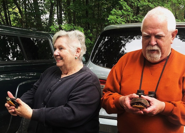 This past Saturday the northwest wind blew in some cold rain and fog. For the first time in the last few years we failed to find a female turtle digging a hole in which to deposit her eggs. No sun, so there weren't any males or females out in the water basking on logs and rocks either. With the inclement weather, for all we know, the turtles could have all been sitting at home, underwater, eating snacks and patiently waiting for a sunny day?