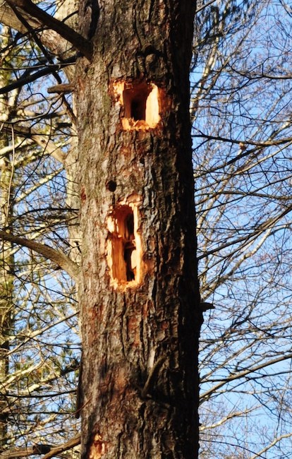 July's Exploring the Southeastern Massachusetts Bioreserve Walk will find us exploring prime SMB pileated habitat. We may hear or see one. We will definitely see some of their rectangular feeding excavations..