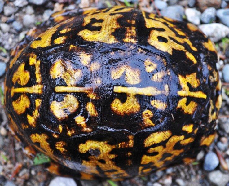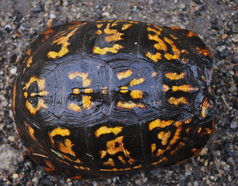 Box turtles can be identified by their carapace pattern. No two are alike.