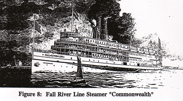 When direct rail service became available from Lowell to Fall River, passengers inland from Lowell, West Concord, Framingham and Taunton traveled to New York via the Fall River Line.