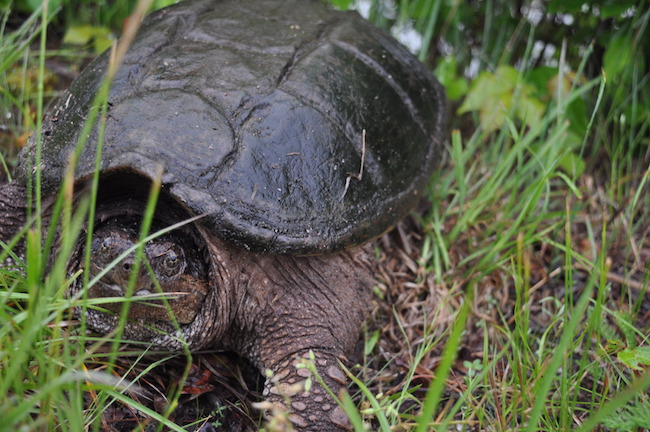 ACTIVITY ALERT - June's Turtle Walk and next Exploring the Southeastern Massachusetts Walk in July Perfect weather, hot and humid this past Saturday, June 2, to find our local southeastern Massachusetts turtles out laying their eggs. Early morning reconnaissance showed dozens of snapping turtles out looking for sites to dig a hole in which to lay their eggs, actually in the process of depositing eggs, or finishing up and heading back to their home water source for a well deserved rest.