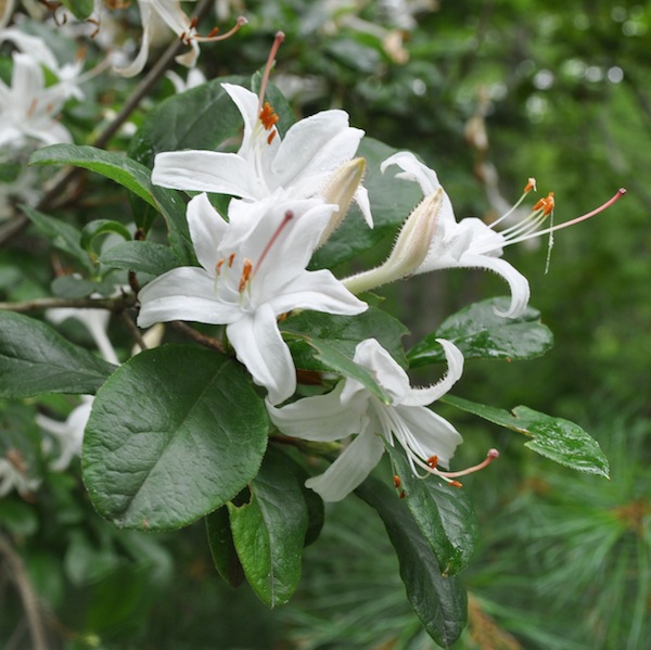 The swamp azalea is a member of the acidic soil loving heath family. Other well known heath family members in local woodlands are blueberry, cranberry, mountain laurel and rhododendron.