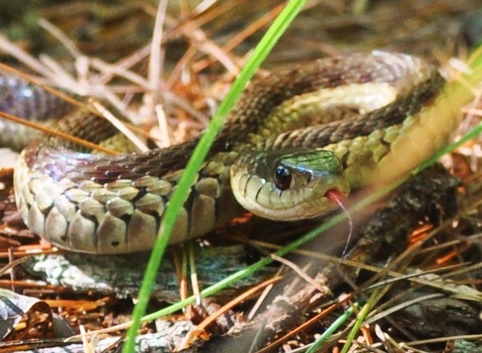 Eastern garter snakes are now out basking on sunny mornings.